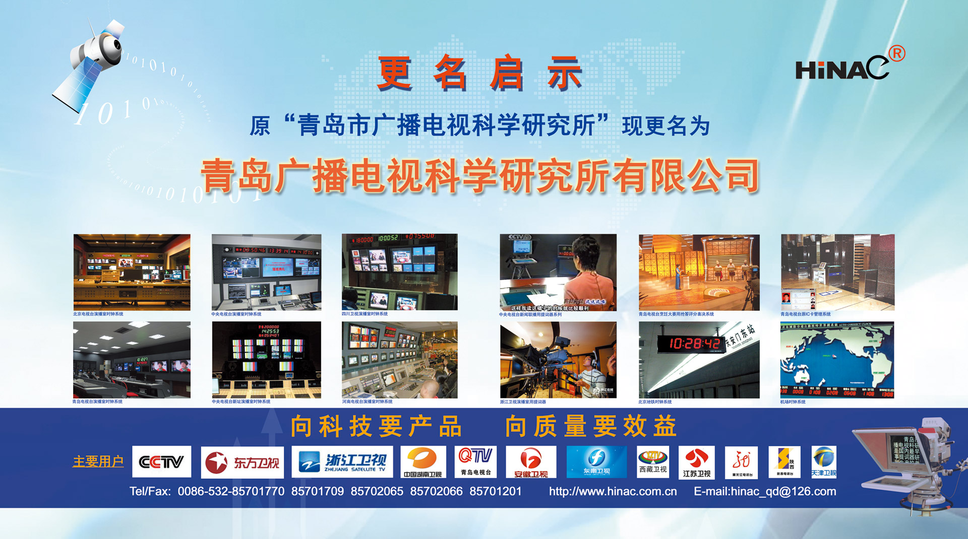 25年不悔的執(zhí)著追求! 25年不懈的專業堅持! 青島廣播電視科學研究所有限公司(簡稱青島廣電所)以其對廣電科技事業無限的熱愛,以及為爭做中國最優(yōu)秀廣電產品供應商的美好理想,25年如一日,深耕廣電設備這塊沃土,已經形成且被市場高度認可的成果有: TVZ系列GPS/北斗自動校時鐘系統 TC系列電視播音提詞器及電視直播系統整體解決方案 TL系列泰麗訊源指示系統 QD系列搶答表決評分系統 IC系列廣電一卡通管理系統 同時向:廣電設備集成商、地鐵輕軌信號系統設備供應商及其它業務方向創(chuàng)新、拓展、前行! 青島廣電所在國家廣電傳媒事業不斷發(fā)展的今天,愿意和您攜手并進,為我們共同的事業發(fā)展添磚加瓦開拓創(chuàng)新。愿意和您一道,把工作中的一個奇思妙想轉變?yōu)橐豁梻?..